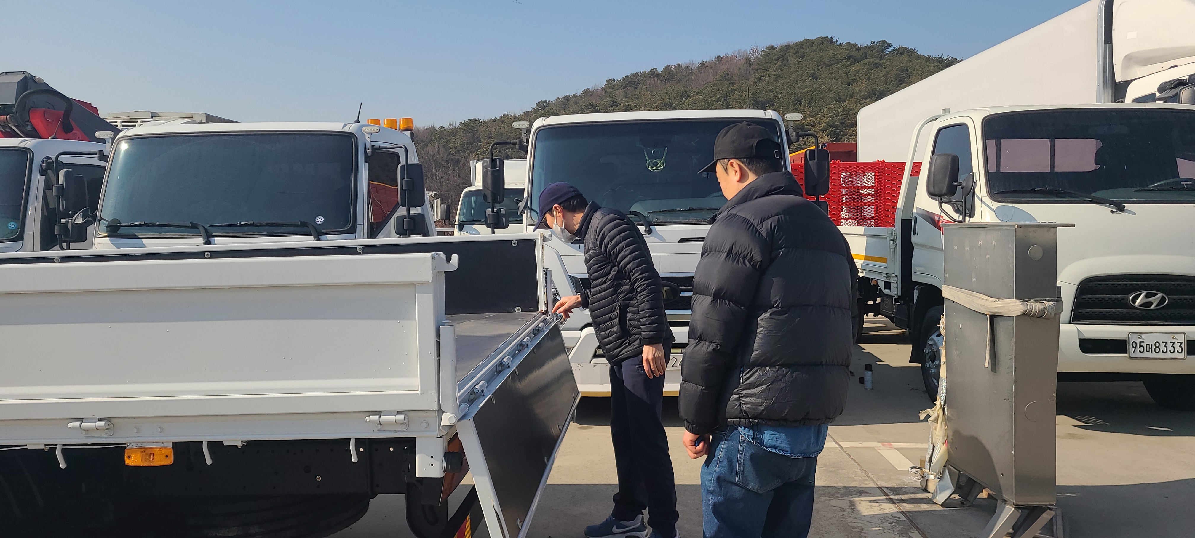 외관과 엔진룸을 확인하고 마지막으로 적재함 상태를 확인했습니다.
