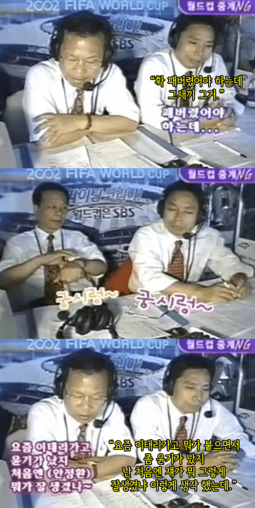 특히 2002년 월드컵 당시 이탈리아에 PK 패배를 당한 안정환은 뒷담화를 했다.