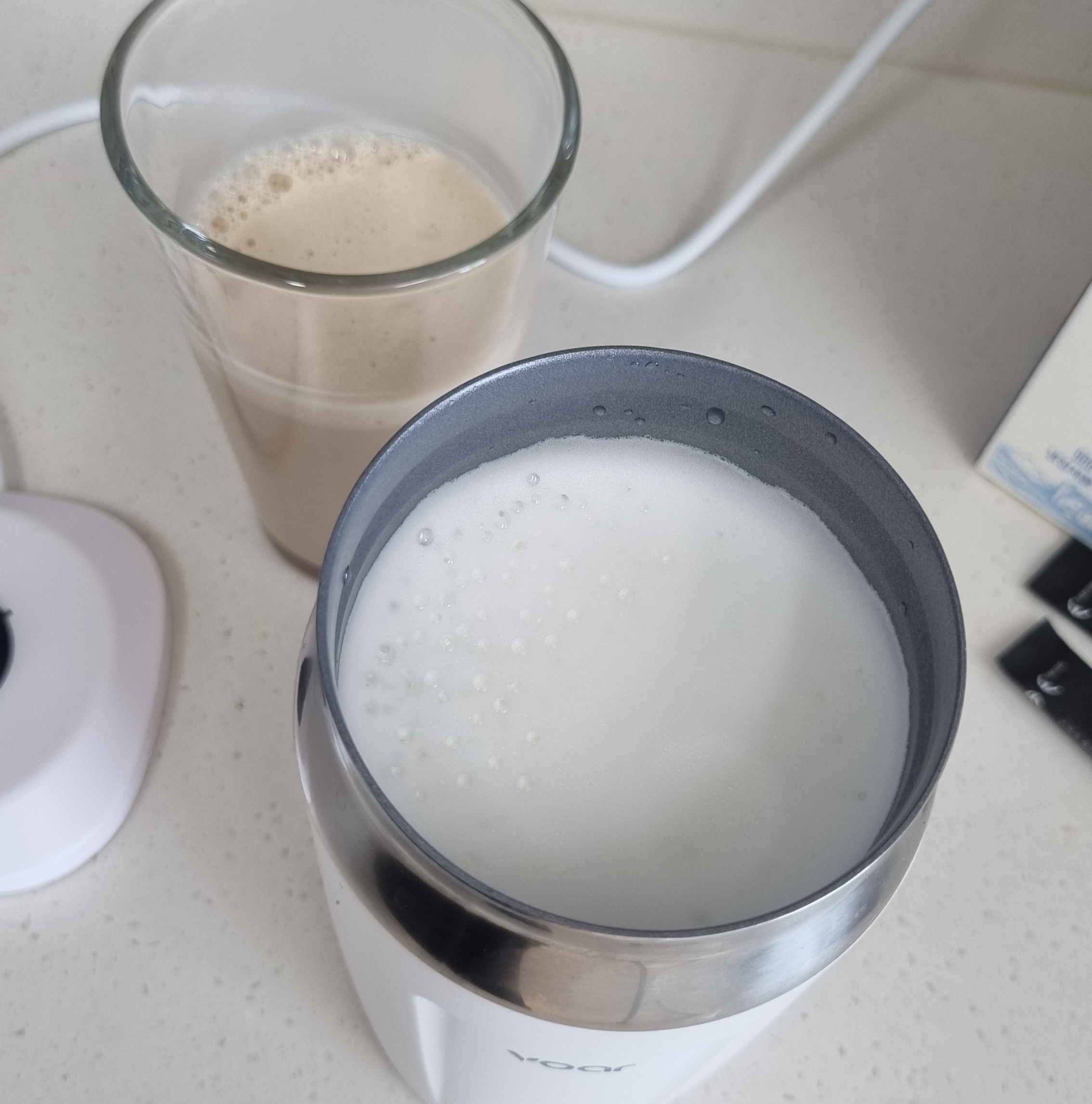 따뜻한 우유로 믹서를 돌려 우유 거품을 만들 수 있습니다.