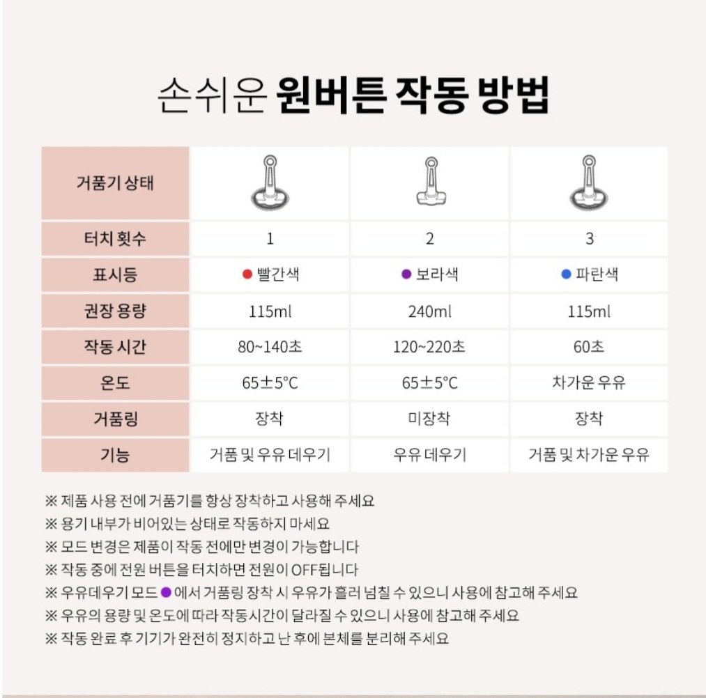 (누르기만 하면 우유와 커피가 섞이면서 데워집니다.)